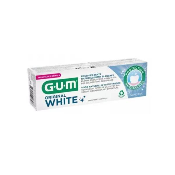 Original white dentifrice 75ml GUM est un dentifrice formulé pour préserver et restaurer la blancheur naturelle des dents tout en respectant l’émail. Sa formule aide à éliminer en douceur les taches superficielles responsables du ternissement et à prévenir leur réapparition. Il laisse une sensation de fraîcheur durable, contribuant à une bouche propre, saine et agréable au quotidien. Sa teneur en fluor renforce l’émail et participe à la protection contre les caries.