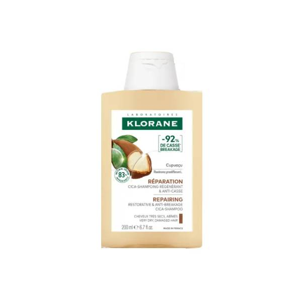 Cica-shampoing réparation régénérant & anti-casse 200ml Cupuaçu Klorane est un soin capillaire conçu pour nettoyer, nourrir et réparer les cheveux abîmés et très secs dès la première utilisation. Sa formule naturelle, enrichie en Cupuaçu BIO, débarrasse le cuir chevelu des impuretés tout en apportant hydratation et nutrition à la fibre capillaire. Les cheveux retrouvent douceur, souplesse, brillance et sont plus faciles à coiffer. Adapté à tous les types de cuir chevelu, il est particulièrement recommandé pour les cheveux ondulés, bouclés, frisés ou crépus.