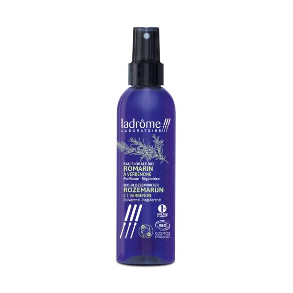 Eau florale romarin à verbénone bio 200ml Ladrôme, issue de la distillation des parties aériennes fleuries de Rosmarinus officinalis, dégage une odeur fraîche et aromatique. Elle est traditionnellement utilisée pour purifier et réguler le cuir chevelu déséquilibré, notamment en cas de pellicules ou de cheveux gras, favorisant ainsi des cheveux en bonne santé. Elle peut également être appliquée en lotion tonique journalière pour les peaux mixtes à grasses. Cultivée et récoltée en France, elle est distillée à la vapeur d’eau dans le Gard et conditionnée dans les locaux de Ladrôme Laboratoire.