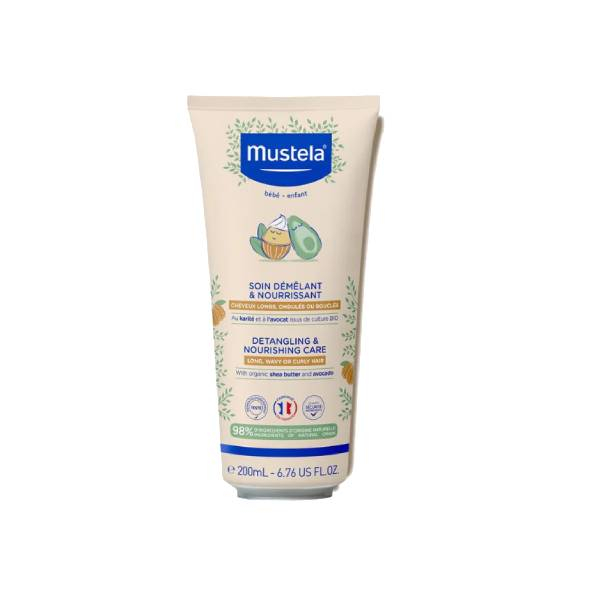 Soin démêlant et nourrissant 200ml Mustela Bébé conçu pour répondre aux besoins des cheveux longs, ondulés ou bouclés des bébés et des enfants. Sa formule composée à 98% d’ingrédients d’origine naturelle, enrichie en beurre de karité bio et en huile d’avocat bio, nourrit intensément la fibre capillaire tout en apportant brillance et douceur. Adapté à un usage quotidien, ce soin peut être appliqué comme après-shampoing pour démêler délicatement les cheveux ou en soin sans rinçage pour hydrater et faciliter le coiffage, tout en laissant les boucles définies et délicatement parfumées.