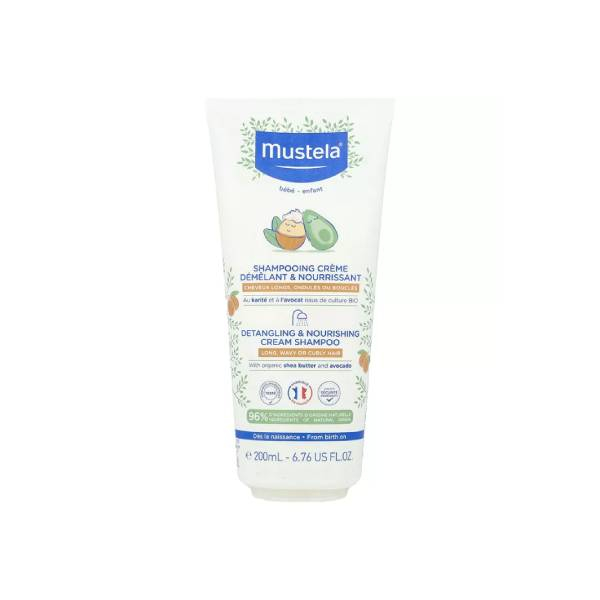Shampooing crème démêlant & nourrissant 200ml Mustela est formulé pour laver en douceur les cheveux bouclés, frisés ou ondulés des bébés et jeunes enfants, dès la naissance. La formule délicate nettoie sans agresser le cuir chevelu sensible, tout en facilitant le démêlage. Enrichi en Beurre de Karité Bio et Huile d’Avocat Bio, ce shampooing nourrit la fibre capillaire, renforce la souplesse des cheveux et leur apporte brillance et douceur, sans les alourdir.