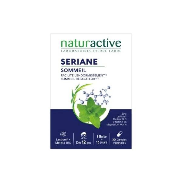 30 gélules Seriane sommeil Naturactive est un complément alimentaire conçu pour favoriser un sommeil réparateur, réduire la fatigue et améliorer la qualité de vos nuits. Sa formule triple action associe des actifs naturels sélectionnés pour agir sur la détente, l’endormissement et le bien-être général. Pour soutenir cette action on retrouve du concentré de magnésium marin, de la vitamine B6 ou encore du zinc.