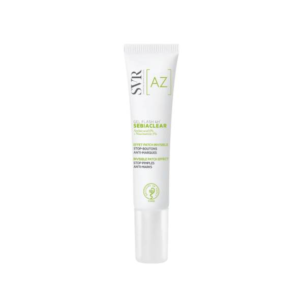 Sebiaclear gel flash 4H 15ml SVR est un soin ciblé conçu pour les peaux mixtes à grasses à tendance acnéique. Sa formule, associant 5 % d’acide azélaïque et 5 % de niacinamide, agit contre les imperfections dès 4 heures. Ce gel nouvelle génération à effet patch invisible forme un film protecteur qui isole la peau des agressions extérieures et du grattage, tout en favorisant la réparation cutanée. Grâce à sa texture transparente et non collante, il peut être appliqué à tout moment de la journée, même sous le maquillage. Son format nomade permet une réapplication facile pour une action continue contre les boutons, les rougeurs et les marques post-imperfections.