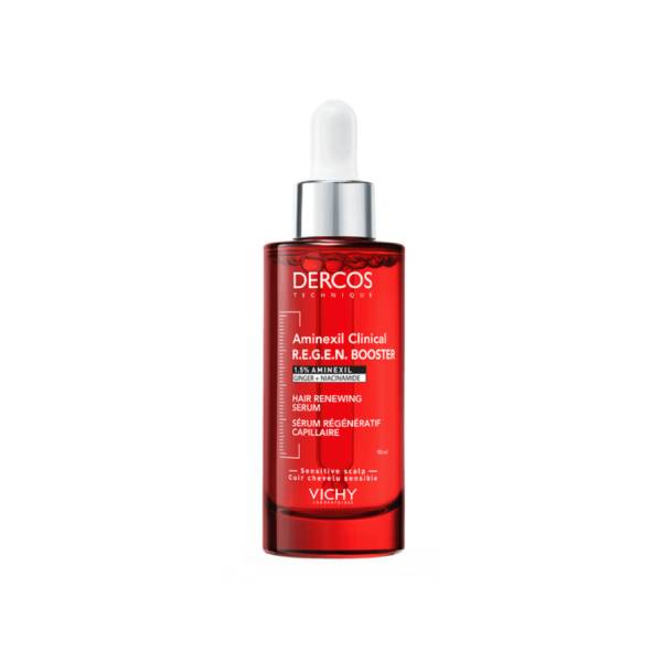 Dercos aminexil clinical R.E.G.E.N booster sérum régénératif capillaire 90ml Vichy est un soin capillaire rénovateur formulé avec 1,5 % d’Aminexil, une molécule reconnue pour lutter contre la perte de densité et la chute de cheveux liée à l’affaiblissement de la fibre. Sa formule agit au cœur du cuir chevelu pour améliorer l’ancrage du cheveu, stimuler la résistance de la fibre et redonner du volume dès les premières semaines. Ce sérum à la texture légère s’applique directement sur les racines sans graisser ni alourdir. En 12 semaines, il offre une efficacité cliniquement démontrée : jusqu’à 14 000 cheveux gagnés, une densité renforcée et des cheveux visiblement plus résistants.