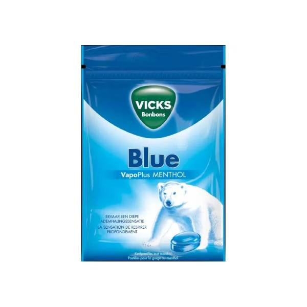 Blue vapoplus menthol 72g Vicks renferme des bonbons offrant une sensation de fraîcheur tout au long de la journée. Formulés à base de menthol et de menthe naturelle, ils aident à décongestionner les voies respiratoires, apaisent la gorge irritée et procurent une haleine fraîche en quelques secondes. Leur formule sans sucres en fait une option idéale pour profiter des bienfaits rafraîchissants de la menthe tout en préservant votre équilibre quotidien.